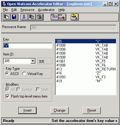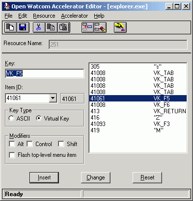 Accelerator Editor: Accelerator Item List