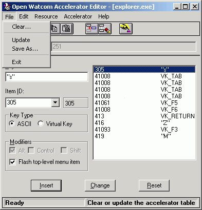 The Accelerator Editor Menu Bar