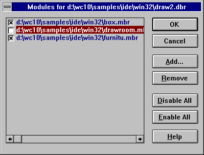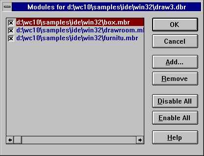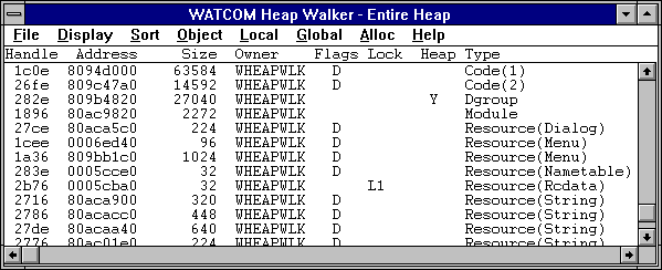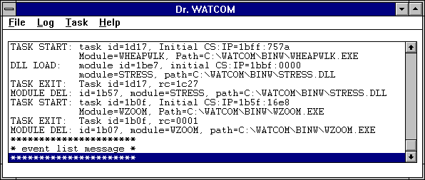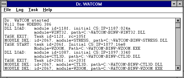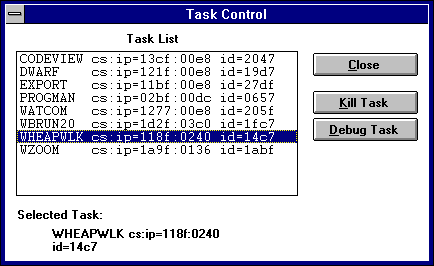 lists all processes currently running under Windows. Any process to which Dr. Watcom is attached is marked with