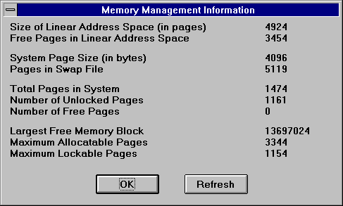 Use the Refresh button to update the information displayed in the Memory Information dialog box.