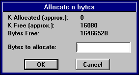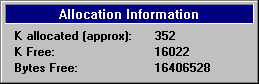 Selecting the Memory Info button on the Process Control dialog opens a Memory Information dialog box. This dialog