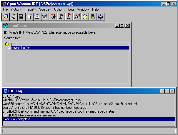 Watcom then starts the specified process and attaches to it immediately.